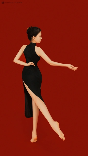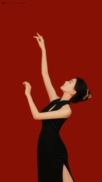 锦袍素雅身段娇,春风拂柳展妖娆。