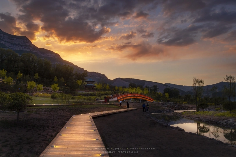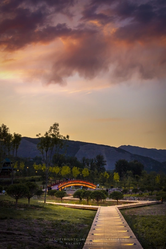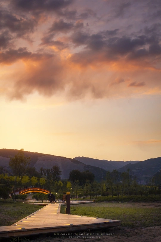 2022.5.15拍摄于太原市汾河公园四期 下午熟知有晚霞,驾车前往汾河公园四期,傍晚7点20分,太阳缓缓落下,随之而来的是满天橘红色,晚霞如期而至,便十分激动就近找机位找构图,利用木栈道作为引导线进行构图,位于汾河西岸的慈萱亭景点,紧邻西山溪水,在落日余晖的照射下也十分有意境 游玩的人纷纷掏出手机拍照,记录下这片美丽的天空 @米拍汽车 @李铁牛儿 @米拍专访 @米拍小助手 @米拍摄影学院 @米拍
