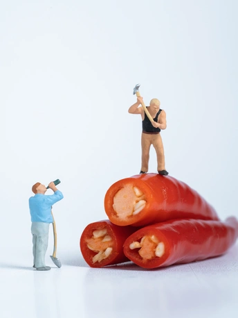 🍃每一种蔬菜都有它自己特殊的形态,这种特殊的形态也给它赋予了特殊的灵魂。 ✨它像一个个红灯笼 ✨它像一弯月亮 ✨它像一串串鞭炮 ✨它像一把弯刀 ✨它像成熟的红色草莓 🍃食物自有它本身的美好,只要你认真体会与感受。 🌹感恩拥有的食物 摄影师:沐酱 @米拍 @米拍社长