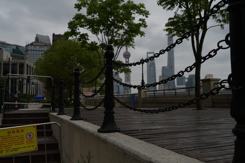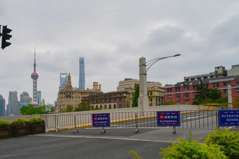 5月16日,封控了50天的上海,外白渡桥仍关闭,四川路桥仍关闭,许多路口都被封得死死的,路口都架了许多许多的铁栅栏,商店仍不营业,附近只有少数几个小超市可以让无疫小区的居民出来在规定的时间购物。货品还是以前的那个货品,但价钱是涨了不少,至少是一倍以上。在关闭的小店的门口写有怀念的句子。位于中山南路的金南新苑等密密层层的高楼,还没全部开放,仍在封闭之中,足不出户。