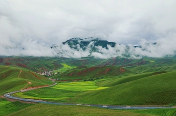 卓尔山属于丹霞地貌,由红色砂岩、砾岩组成。藏语称为"宗穆玛釉玛",意为美丽的红润皇后。卓尔山景区项目建设地位于祁连县八宝镇,紧靠八宝河与藏区神山阿咪东索(牛心山)隔河相望。站在卓儿山顶视野极度开阔,四周没有任何遮拦,山对面是一山尽览四季景色的牛心山,左右两侧分别是拉洞峡和白杨沟风景区,背面是连绵起伏的祁连山,山脚下滔滔八宝河像一条白色的哈达环绕在县城周边。 清晨金色的暖阳投射在祁连山脉上,勾勒出柔美与伟岸交织的山峦的线条。群山环抱的祁连县城也渐渐从熟睡中被唤醒。推窗远眺,平缓的草原连接了红顶白墙的现代建筑与山峰覆盖积雪的牛心山,美景如画,映在蓝天白云的背景上,一派北欧风情。祁连风光宛如一幅天然画卷,江南的风韵细腻和北方的粗犷神奇完美结合。