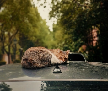 在小区做核酸的时候看到的,趴在车顶午睡的猫咪,很是安逸