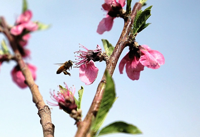 西山万亩桃花开了,看花期间没有大风和冷空气入侵,蜂蜜帮助授粉,看来今年一定是桃子个丰收年