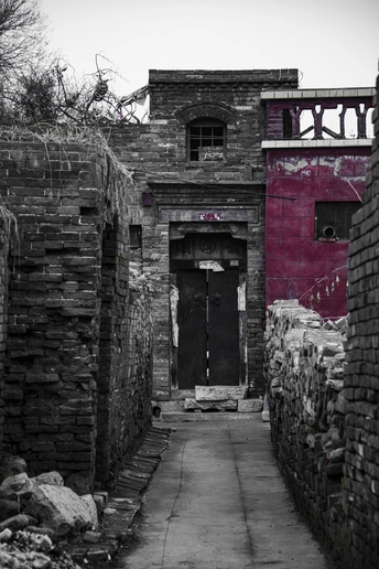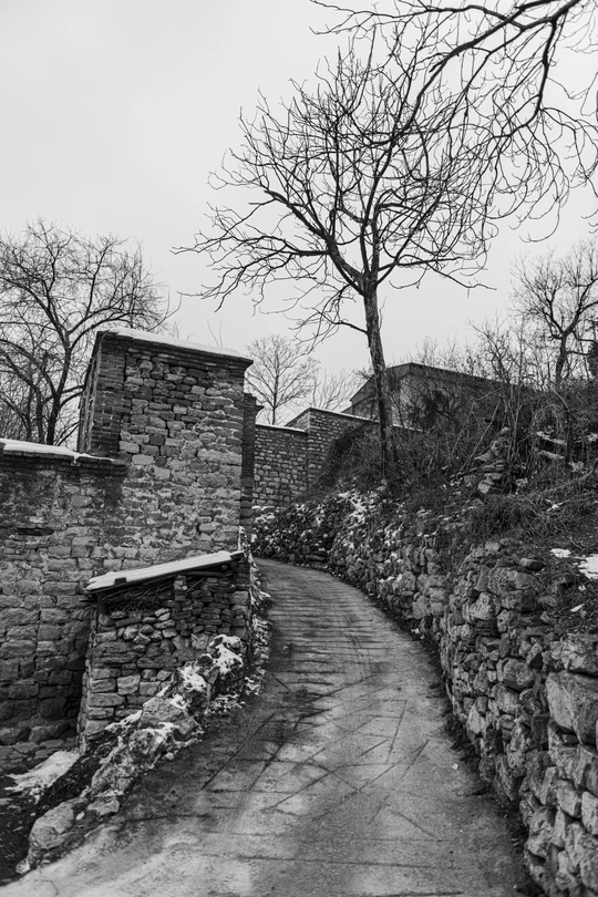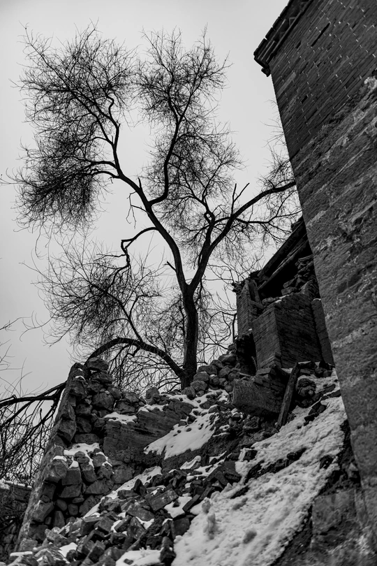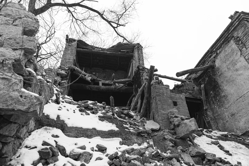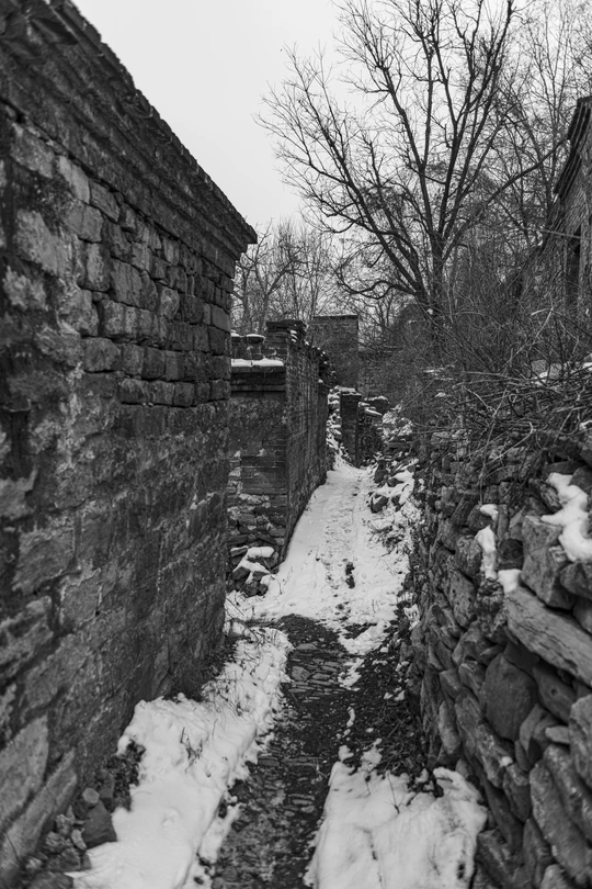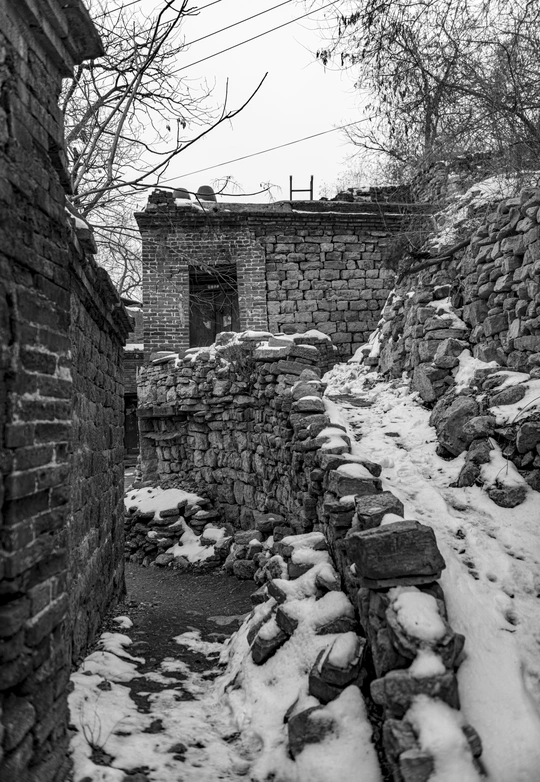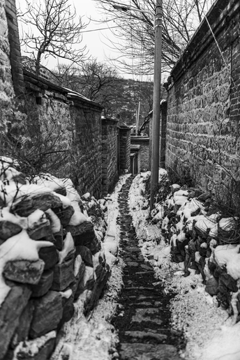 **时代的印记 破旧的房子 白雪皑皑的小路 藏在深山里的纪实