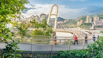 剑州大桥起于福建省南平市延平区滨江路与鼓楼街交叉口,设置平面交叉连接滨江路与鼓楼街,横穿江滨公园、西溪,终位于九峰山麓朱熹路的南平跨江大桥。桥体共包括主线桥梁及南平案引桥和九峰立交主线桥;通过互通立交,桥面与规划的九峰路相交。主线桥梁全长449米,包括42.5米南平岸引桥、240米主桥及166.5米九峰立交主线桥,九峰岸A匝道桥长91米。桥梁远期按八车道设计,两侧各设3米宽人行道,桥面总宽35米。为自锚式独塔悬索斜拉协作体系桥。历经四年建设,南平市延平区剑州大桥6月29日通车。剑州大桥起于南平市延平区城区滨江路与鼓楼街交叉口,横穿江滨公园、西溪,终于九峰山麓朱熹路。通车后,从延平区市区到江南新区的距离缩短3.5公里左右,将拉开延平区城市框架、方便闽江两岸群众出行。[抱抱]