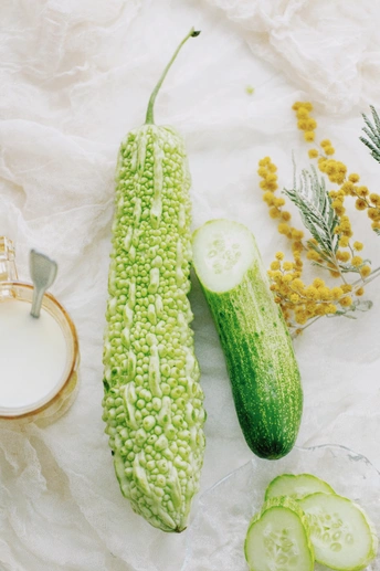 好久没有拍桌面静物了,今天玩了十来分钟,拍得比较匆忙,急着出门接孩子,连瓜都没有切开。 . 最近学了一个菜,苦瓜炒咸鸭蛋,绝妙~ 为了减肥连续三天早上只吃黄瓜和牛奶了,很舒服~ 微微的苦和微微的甜都是我喜欢的♥️ . 🥘苦瓜炒咸鸭蛋做法: ①苦瓜切片,放一点点盐,濯水备用 ②咸鸭蛋将蛋黄蛋白分开,蛋黄压碎 ③起锅热油,蛋黄放入炒碎微微冒泡 ④放入苦瓜翻炒,根据口味加调料 ⑤放入蛋白翻炒 ⑥出锅~