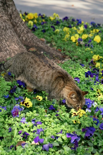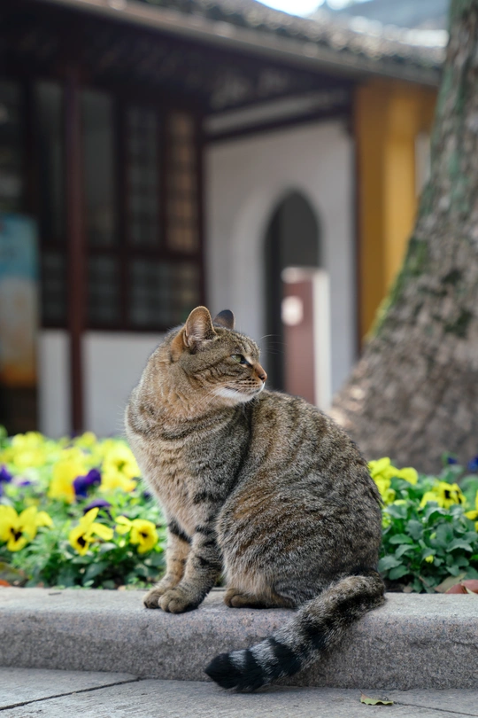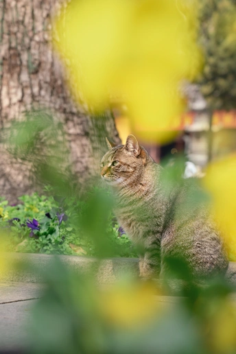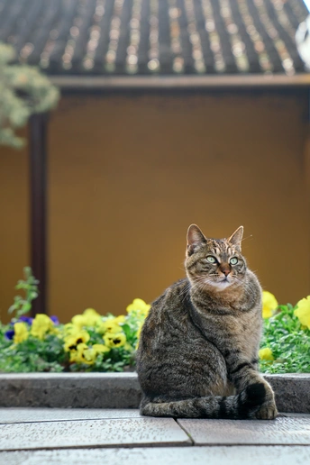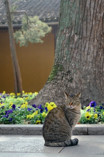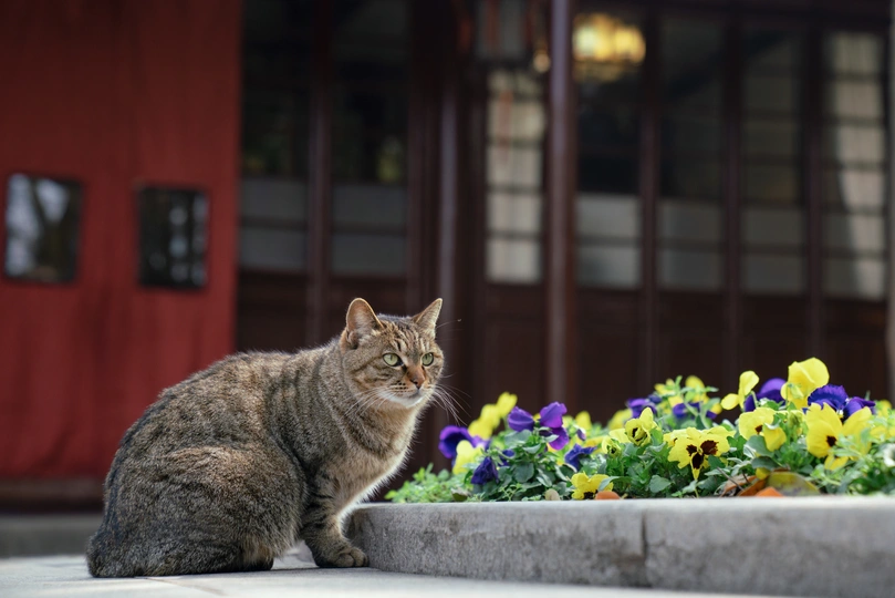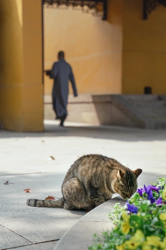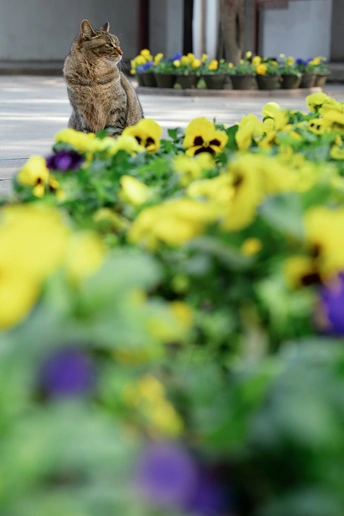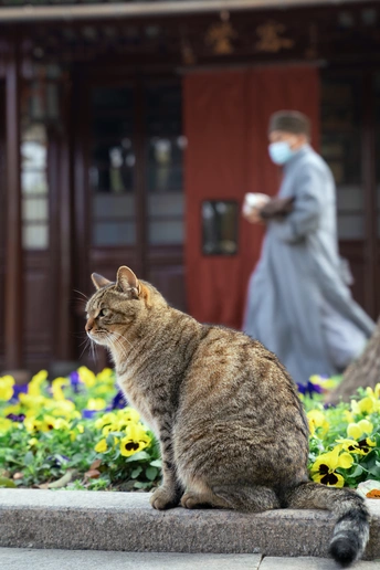 西园寺里,猫咪和僧侣共住。