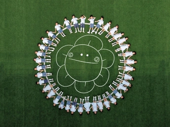我们是祖国的花朵, 在阳光下尽情的歌唱, 一幅幅灿烂的笑容, 是我们最幸福的模样。