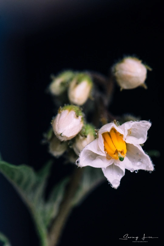 疫情期间种的土豆,从发芽到开出第一朵小花朵用时一个多月。小可爱赶在六一儿童节给了我一个惊喜,开出了第一朵小花?,好吧,那我也纪念一下你今天的美丽,帮你拍组艺术照吧? 2022.6.1 土豆花