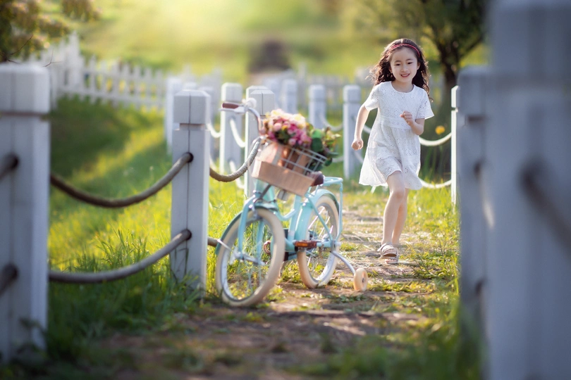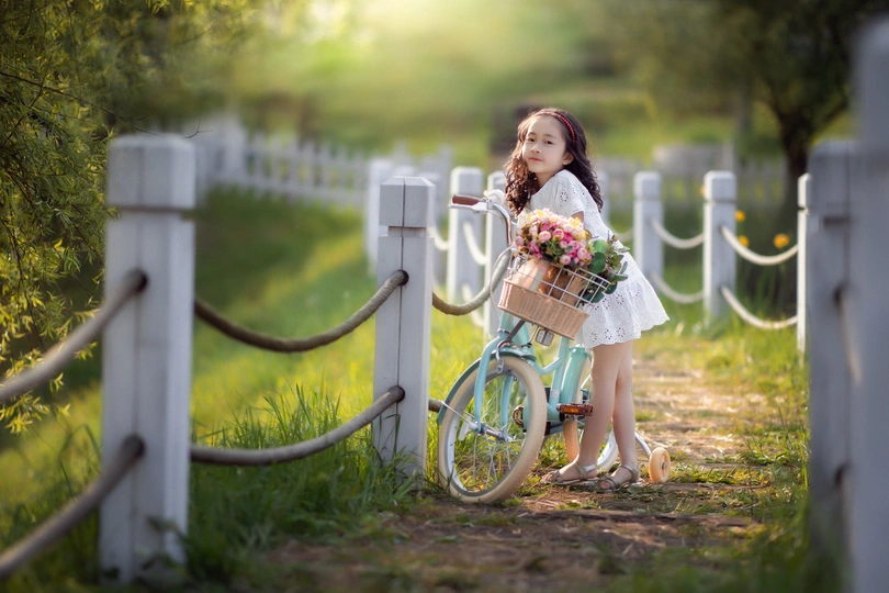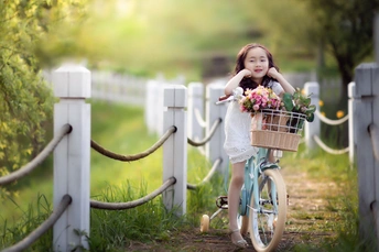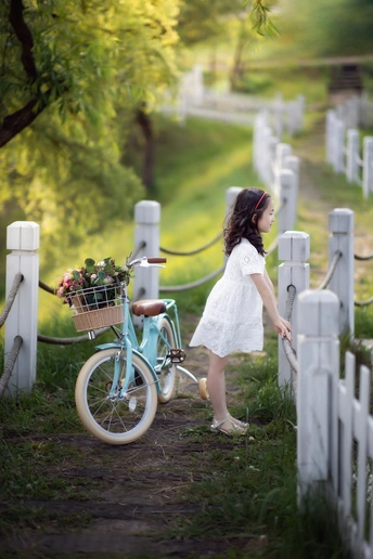 骑自行车的小女孩