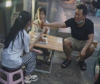 买饭的时候看见这样的一幕,一位男的带着两位女儿来吃炸串,买的都是女儿爱吃的,女孩说“爸爸你也吃”,男的说“你和妹妹吃吧,爸爸不饿”