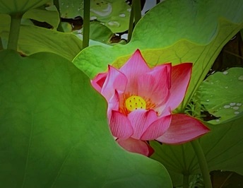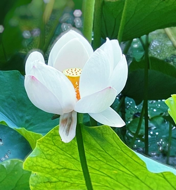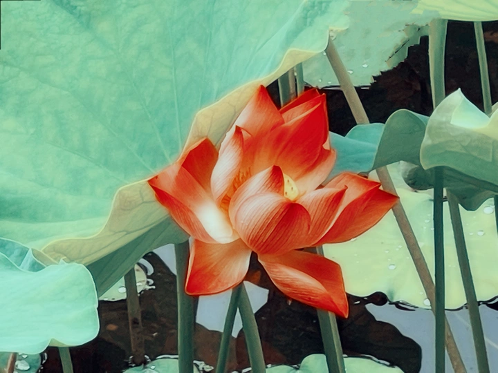 荷花亭亭玉立,像在湖上沐浴的仙女,嫩蕊凝珠,而且清香阵阵,沁人心脾。