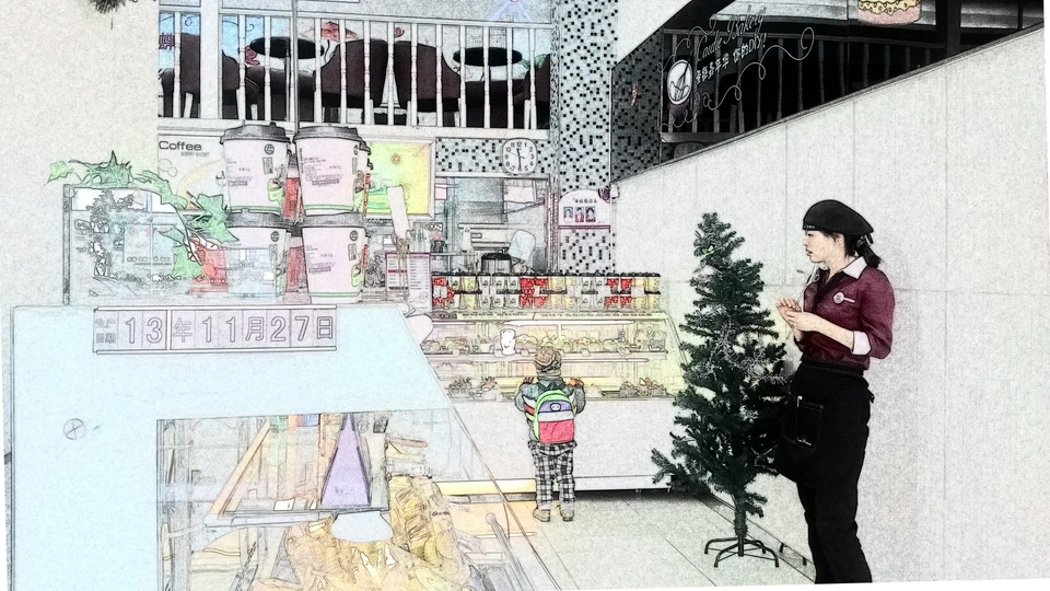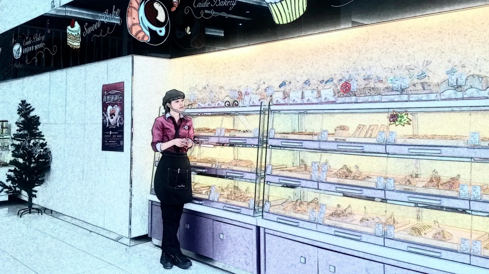 偶然翻到躺在我硬盘里很有故事感的照片,这是手机抓拍的,还是漫画风格,虽然过去很久了,但是看到后还是能勾起我的一些记忆,这是一家本地的蛋糕店,店员的名字真是忘了,可记得她是个温柔善良的女孩子。