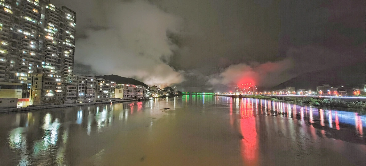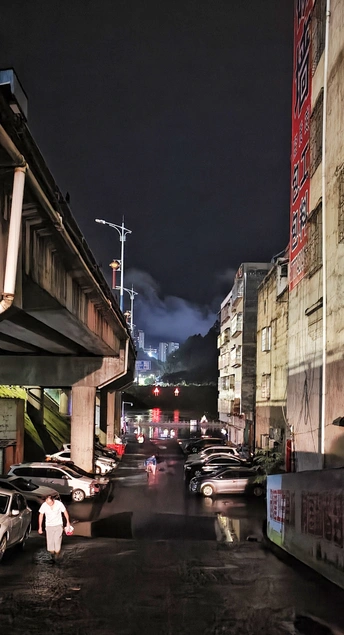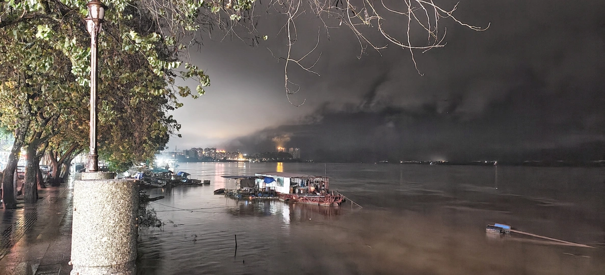 因西江上游时续下雨关系,洪水开始上街了