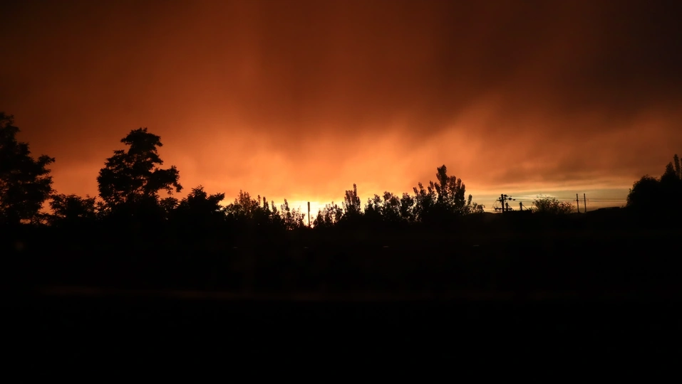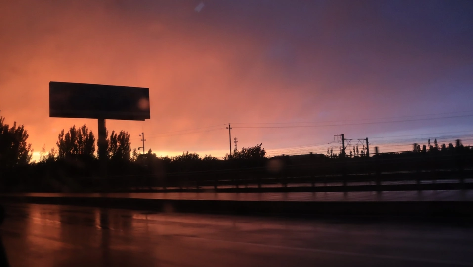 邯郸昨天傍晚七点,太阳落山的时候,正遇上大雨前夕,大体积的云被夕阳晕染的像烧红的一样