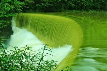 持续的暴雨,一池卧龙潭的碧水成了黄绿色