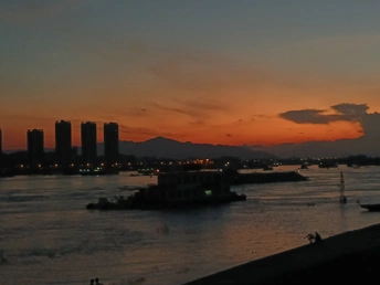 傍晚的景色似乎都是美妙的,夕阳无限好,游轮也在江上慢慢的行动着,总归是静谧却又美好的,江边的人们嬉嬉闹闹,有的拿出手机记录下这一刻的美好,有的与相爱之人在夕阳下显示爱情的美好,夕阳真的太美好了,让人舍不得去破坏