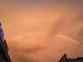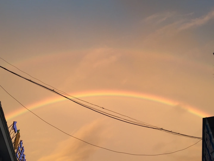 出去玩到傍晚,转身一看被惊艳到了,双层彩虹的幸运!彩虹处的云也像翅膀般,让我充满想象,在这个现象后就下起了倾盆大雨
