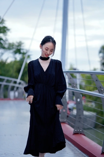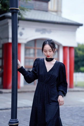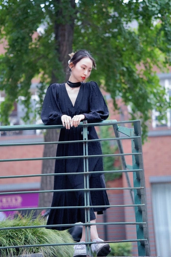 在松江泰晤士小镇的拍照的时候,看到这个女孩,身穿一件黑色长裙,气质和身材都不错,遂邀请匆忙拍摄一组。