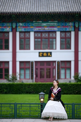 小姐姐想穿Lolita小裙子拍毕业写真 裙子:玫瑰沙龙 小姐姐好优雅,像公爵最掌上明珠的小女儿 学士服开襟好适合作一件优雅的袍子