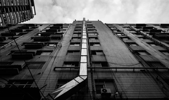 仰头看老旧小区楼栋的压迫感