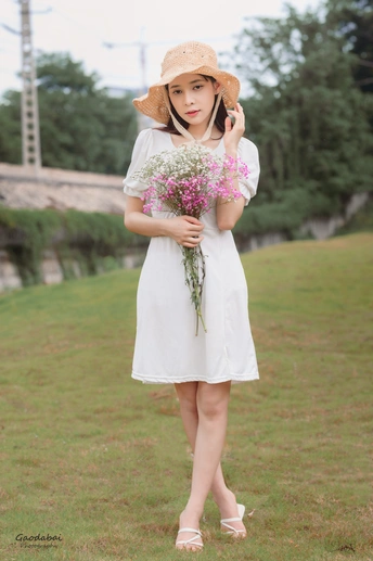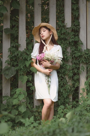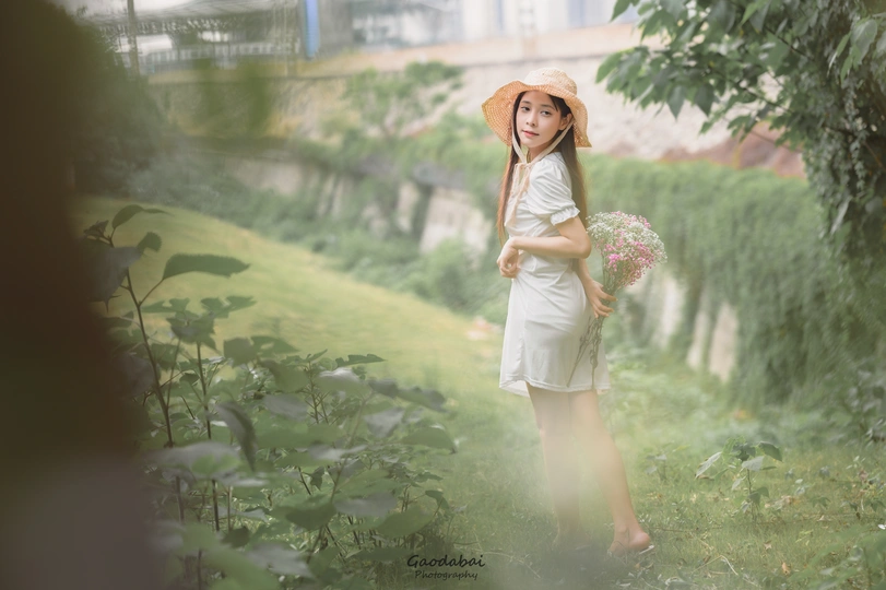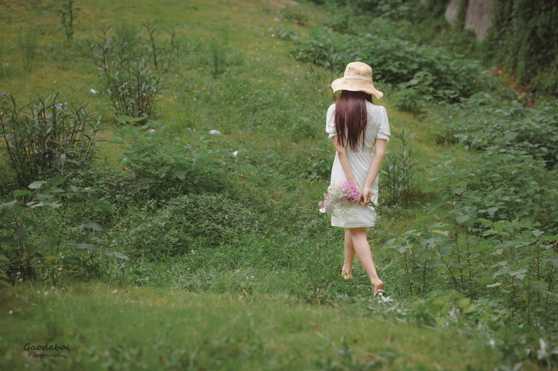 📷尼康ℤ6ii+z35 1.8s+z85 1.8s 🧚♀️蛋蛋 📸我 这个公园也是别的摄影师告诉我的,虽然很小但是超适合拍摄法式服装~ 我是喜欢往草丛里钻🤣 其实另一头还有一小片高芦苇,有好看的夕阳的话就超有氛围!! 拍的时候其实天气有点调皮,一时阴天一时阳光,后面甚至下起了雨。所以后期修的时候把阴天图里的模特专门拉亮了,正好背景全是绿的,本身就要拉低饱和和明度,想营造个淡淡地被阳光打亮的感觉,虽然有点太淡了不是很明显