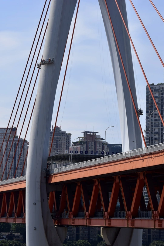 2022年五一劳动节假期,劳动者们仍坚守在东水门大桥桥梁维护的工作岗位上,用汗水表达对都市家园的火热的爱。