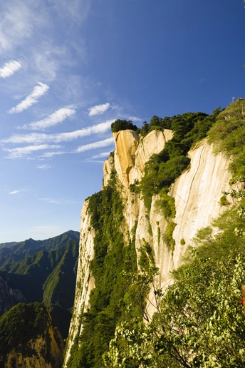 华山,古称“西岳”,是我国著名的五岳之一,位于陕西省华阴市境内,距西安120公里,秦、晋、豫黄河金三角交汇处,南接秦岭,北瞰黄渭,扼大西北进出中原之门户,素有“奇险天下第一山”之称。华山系一块完整硕大的花岗岩体构成,其历史衍化可追溯至27亿年:《山海经》载:“太华之山,削成而四方,其高五千仞,其广十里。”华山之险居五岳之首,有“华山自古一条路”的说法。 华山有东、西、南、北、中五峰,主峰有三:南峰“落雁”,为太华极顶,海拔2160.5米;又有东峰“朝阳”,西峰“莲花”,三峰鼎峙,“势飞白云外影倒黄河里”,人称“天外三峰”。云台、玉女二峰相辅于侧,36小峰罗列于前,虎踞龙盘,气象森森,文人谓之西 京王气之所系。山上奇峰、怪石、云海、鸣泉、飞瀑、古迹遍布,著名景点多达210余处有凌空架设的长空栈道,三面临空的鹞子翻身,以及在峭壁绝崖上凿出的千尺幢、百尺峡、老君犁沟、上天梯、苍龙岭等。华岳仙掌被列为关中八景之首。因山上气候多变,形成的“云华山”、“雨华山”、“雾华山”、“雪华山”给人以仙境美感。