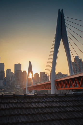 去水门打卡照,用瓦片屋顶做了前景,放大仔细看太阳的右上方和左边还有两家飞机飞过捏,刚好让我手持包围曝光操作的时候其中一张照片拍到了,andbalalalalalal。 时间:7月5日 地点:东水门大桥