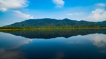 2022年7月11日,自驾再次来到黎塘湿地,看到这一幅美丽的天空之镜画面,不知道的人觉得这风景很美,但它确实也是很美的。可是在这美丽的风景背后,黎塘湿地承受了无数的忧伤。2022年6月,南方的大降雨导致粤北一带水位上涨,而黎塘这一片本应该是一片绿油油的稻田,却被洪水淹没而形成了现在这一道美丽的风景线。