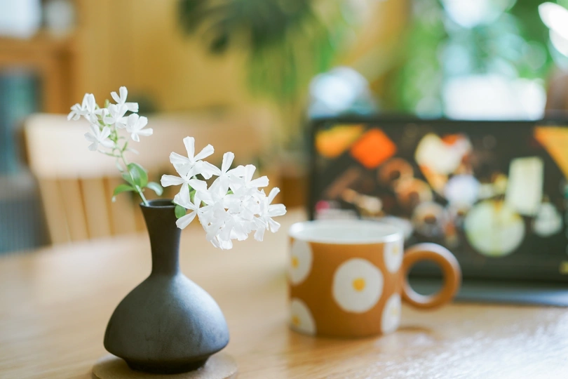 小花园剪下几朵花插起来 听着歌 喝着茶 此刻 生活因你而火热