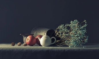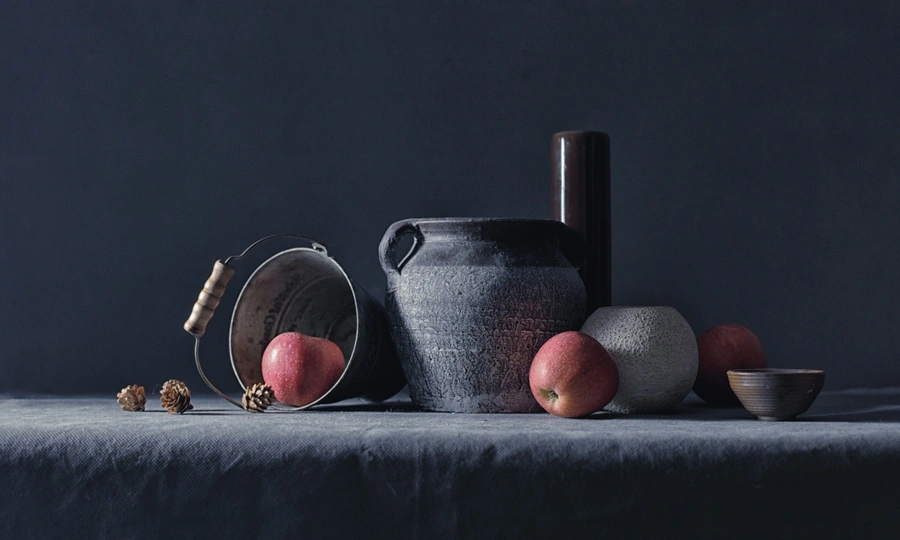 一些光影的练习。 想拍出古典油画作品的感觉。一些物品无规则地摆放在桌上,却在凌乱中感受到一丝框架。