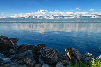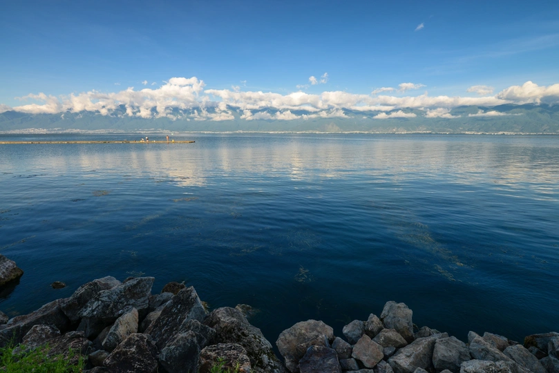 清晨从洱海东岸远眺,远处的苍山笼罩在淡金色的晨光中。苍山山顶的带状云变换着形态,山影和云影倒映在泛着淡淡波纹的清冽湖水中,随着湖水的波动聚散摇曳。仲夏时节的苍山,虽然少了“苍山雪”映衬下的苍俊,却多了“苍山云”加持下的秀美。苍山洱海畔,大理四时皆美景。#大理#苍山洱海