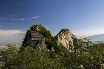 华山,古称“西岳”,是我国著名的五岳之一,位于陕西省华阴市境内,距西安120公里,秦、晋、豫黄河金三角交汇处,南接秦岭,北瞰黄渭,扼大西北进出中原之门户,素有“奇险天下第一山”之称。华山系一块完整硕大的花岗岩体构成,其历史衍化可追溯至27亿年:《山海经》载:“太华之山,削成而四方,其高五千仞,其广十里。”华山之险居五岳之首,有“华山自古一条路”的说法。 华山有东、西、南、北、中五峰,主峰有三:南峰“落雁”,为太华极顶,海拔2160.5米;又有东峰“朝阳”,西峰“莲花”,三峰鼎峙,“势飞白云外影倒黄河里”,人称“天外三峰”。云台、玉女二峰相辅于侧,36小峰罗列于前,虎踞龙盘,气象森森,文人谓之西 京王气之所系。山上奇峰、怪石、云海、鸣泉、飞瀑、古迹遍布,著名景点多达210余处有凌空架设的长空栈道,三面临空的鹞子翻身,以及在峭壁绝崖上凿出的千尺幢、百尺峡、老君犁沟、上天梯、苍龙岭等。华岳仙掌被列为关中八景之首。因山上气候多变,形成的“云华山”、“雨华山”、“雾华山”、“雪华山”给人以仙境美感。