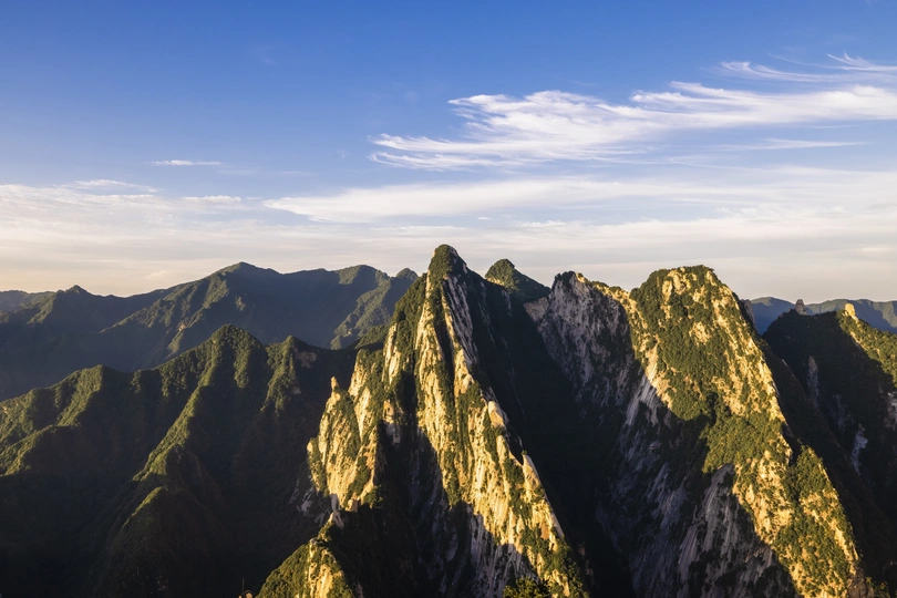 华山,古称“西岳”,是我国著名的五岳之一,位于陕西省华阴市境内,距西安120公里,秦、晋、豫黄河金三角交汇处,南接秦岭,北瞰黄渭,扼大西北进出中原之门户,素有“奇险天下第一山”之称。华山系一块完整硕大的花岗岩体构成,其历史衍化可追溯至27亿年:《山海经》载:“太华之山,削成而四方,其高五千仞,其广十里。”华山之险居五岳之首,有“华山自古一条路”的说法。 华山有东、西、南、北、中五峰,主峰有三:南峰“落雁”,为太华极顶,海拔2160.5米;又有东峰“朝阳”,西峰“莲花”,三峰鼎峙,“势飞白云外影倒黄河里”,人称“天外三峰”。云台、玉女二峰相辅于侧,36小峰罗列于前,虎踞龙盘,气象森森,文人谓之西 京王气之所系。山上奇峰、怪石、云海、鸣泉、飞瀑、古迹遍布,著名景点多达210余处有凌空架设的长空栈道,三面临空的鹞子翻身,以及在峭壁绝崖上凿出的千尺幢、百尺峡、老君犁沟、上天梯、苍龙岭等。华岳仙掌被列为关中八景之首。因山上气候多变,形成的“云华山”、“雨华山”、“雾华山”、“雪华山”给人以仙境美感。