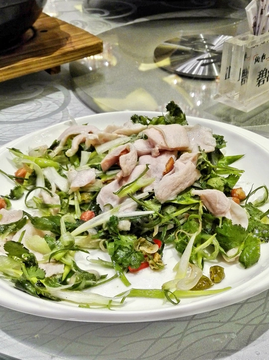 ?大环境还是好找,在门口就能看见广东电视塔,具体位置还是要靠导航,当地吃饭的人比较多,基本都是圆桌为主,环境比较正式。来的比较匆忙,没有提前订到包间。大厅比较宽敞,人流量大就餐。吃饭还是要热闹一点。 ?一道烧鹅就把食欲调动起来,猪肚裹上芥末添色不少,道道菜品都可以推荐,入口即化的食材分分钟提升味蕾空间。菠萝包特别大,感觉一个都饱了,值得回味一定要点。再搭配菊花茶轻轻松松解腻好帮手。