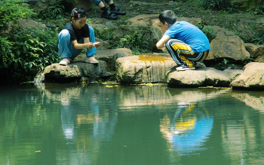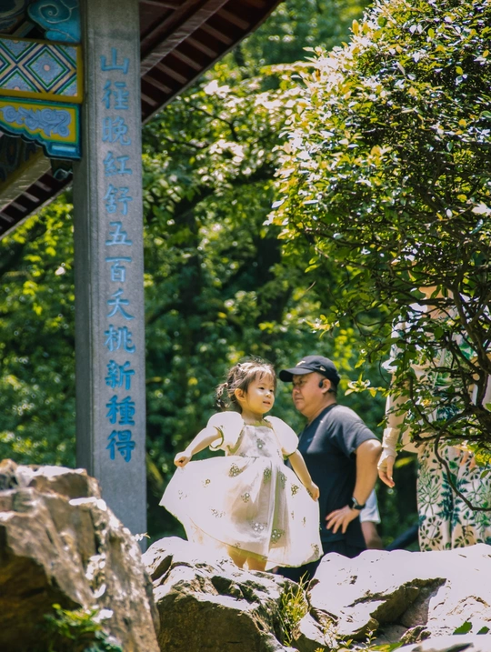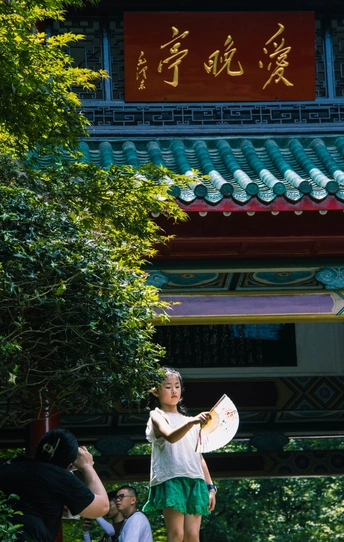 爱晚亭前大家都排队拍照,远远地蹭拍一些小朋友