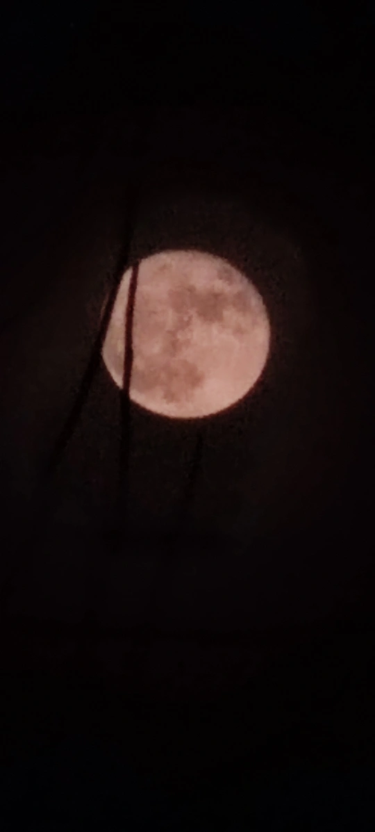 超级月亮的确看上去要比寻常时候要大上许多,不知道是因为天气炎热造成热气升腾的原因,还是因为天空中水汽比较重的原因,9点多钟的月亮看起来有种朦胧的既视感,偶然抬头看见,随手用手机试着拍了下,因为是数码变焦,而且完全是手拍,感觉清晰度的确要差上许多。面前的树枝的影子映在月光之上,也平添了几分寂寥,街上的人们和各色的车辆还是一如既往的行色匆匆,想来是归家渴望的驱使吧。