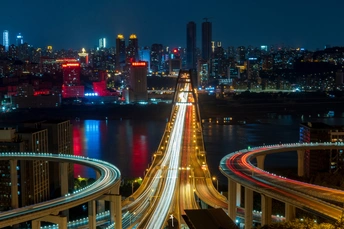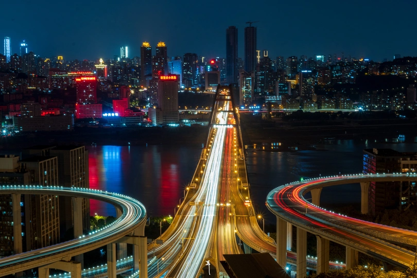 夜幕降临,归家车流未减, 像一串串音符,奏着城市乐章。