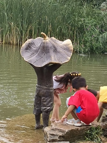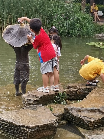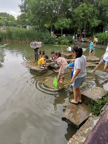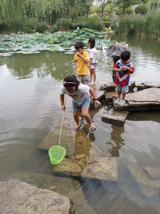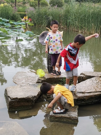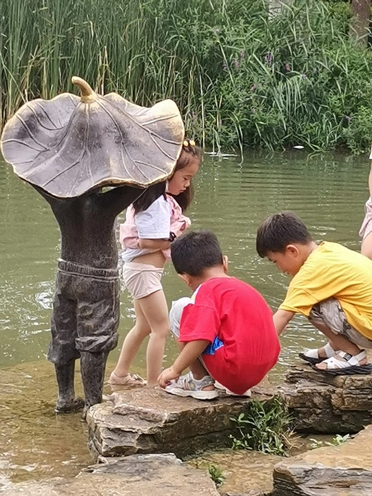 童年时期能有几次这样无拘无束的玩耍,肯定会在今后的人生中留下最难忘的回忆。 捕虫、戏水,孩子们尽情的以他们自认为最有趣的方式与水相融,同水嬉闹…在享受玩的过程中又结识了新朋友。 家长们也在这边目不转睛的守望着玩耍的孩子们,时刻关注着他们,守护着他们。