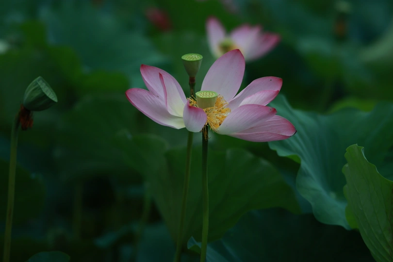 晨开幕敛,满池莲花闪光芒,照耀你我,炎热暑天,带来夏日清凉,八月将近,花开花落又一年,一年一度荷花就快落下帷幕,一花一净土,一土一如来!