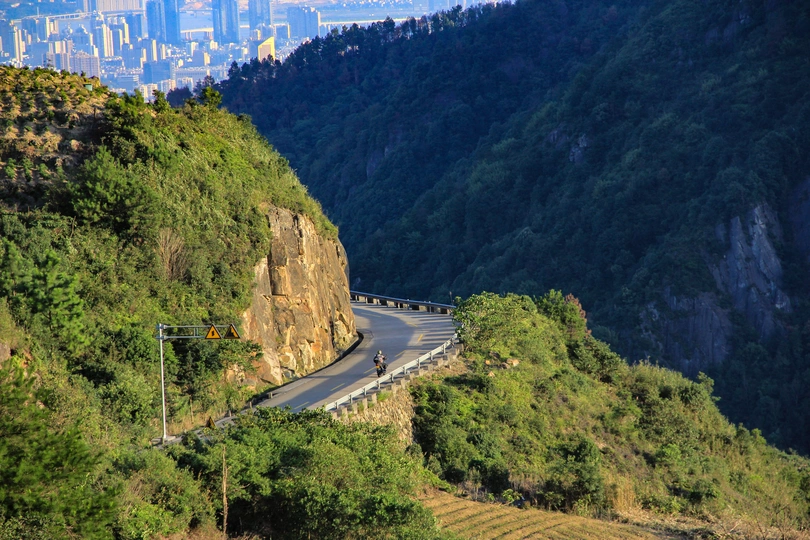 一次爬山经历,有骑士在跑山,在一个弯道抓拍了一张。