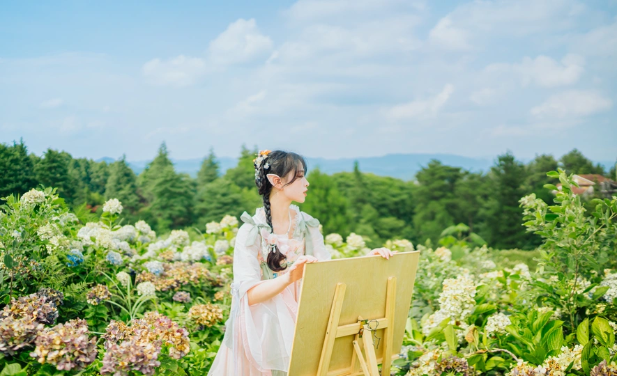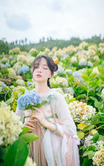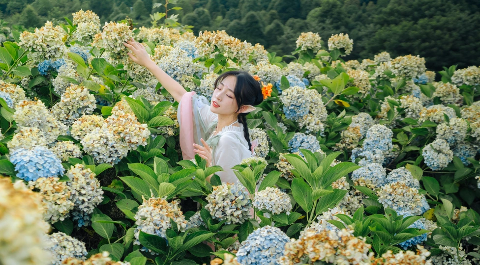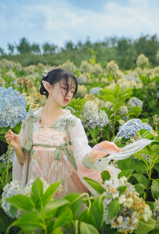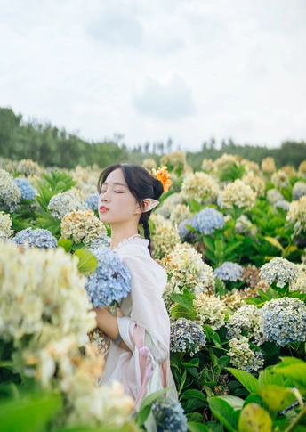 晚风和山谷一一就位,绣球开得肆无忌惮, 你说那是精灵世界的云朵
