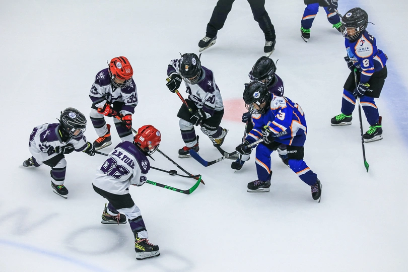 2022年6月5日拍摄于九龙坡区万象城冰纷万象滑冰场,重庆“城市周末杯”青少年冰球春季年赛决赛正在举行,冬奥过后重庆出现冰球热热潮。