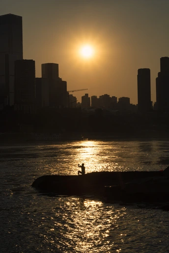 在滨江路看到的场景,日落的时候,本来想拍个剪影,没想到拍完放大一看,这人居然还在用手机拍照,太浪漫了……