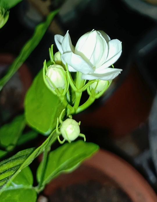 用了补光来拍摄的。刚开的茉莉花。