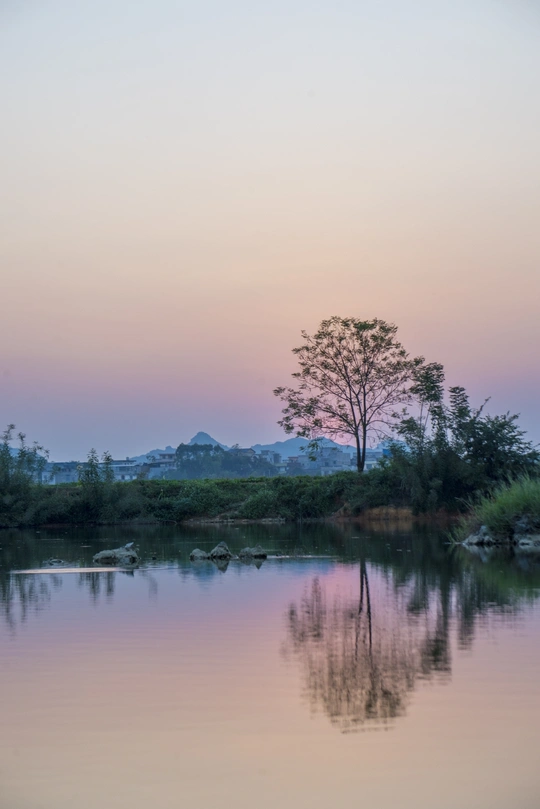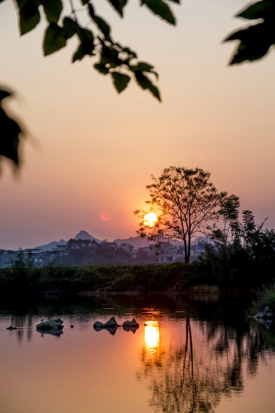 在村里的鱼塘边上拍的,地方虽然很偏僻,但是又了水面的映就很很美
