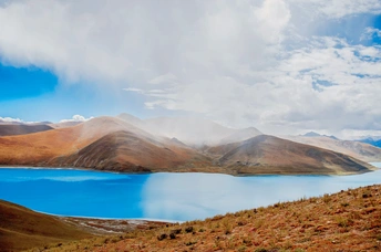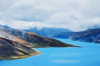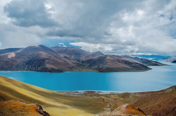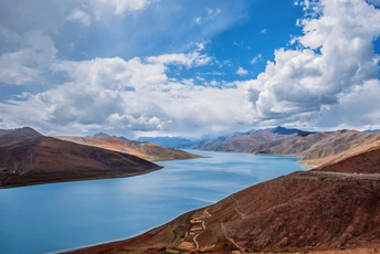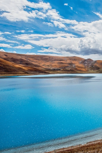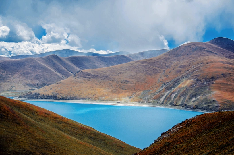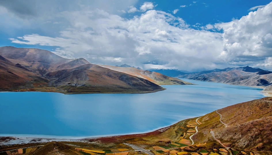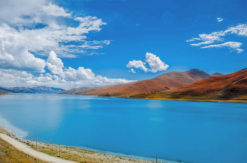 踏遍山河去寻你,唯有你让我觉得,山河滚烫、星海荡漾~羊卓雍措,一颗掉落在雪域高原的蓝宝石。眼前,寂静起伏的山峦,变幻莫测的云彩,纯净如洗的蓝天,碧波无漾的湖水,交相辉映,构成了羊湖浑然天成的唯美画面。满目的蓝,蓝得那么纯粹,那么天然,美到让人窒息,让人觉得此生无憾。
