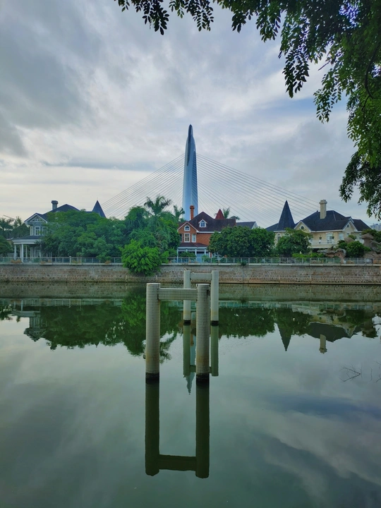 新津河东侧是深房金叶岛住宅区,四面环水,其南面为新建成的新津河大桥,该桥采用斜拉结构。