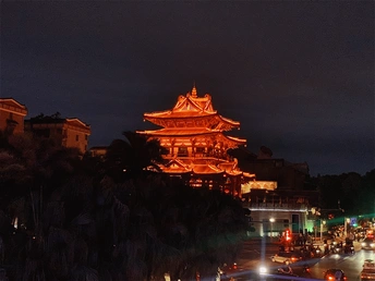 桂林市一个比较著名的小景点道遥楼,一定要晚上去看,才有韵味,就在东西巷和靖江王城的旁边,一定要记住,晚上大约七点才亮灯。晚上拍照,特别漂亮,登上楼顶看桂林市的夜景也很美。